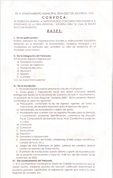 Convocatoria para ingetración del Patronato de la Feria Juchipila 2022
